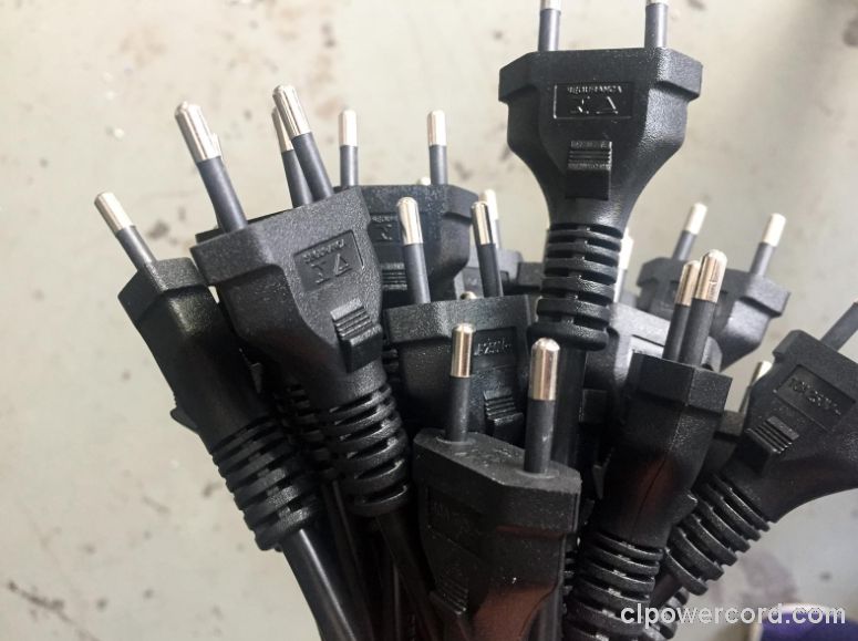 巴西電源線NBR 6147 2.5安培250伏交流電,2極2線非接地巴西電源線,電源線套裝到無終端電纜端CEE 7/16(非極化)Europlug模壓高質量和RoHS / REACH標準。