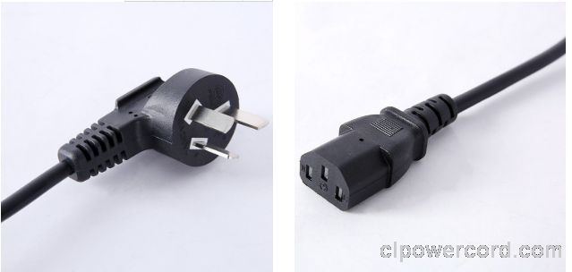中國電源線 (3C電源線) 國標三芯10A彎角插頭,IEC 60320 C13 品子尾,電腦插,CCC認證安規標準AC電源連接線