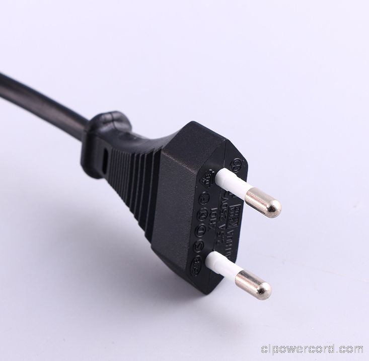 通用電源線插頭德國SCHUKO CEE7/16(歐插)和IEC標準生產(chǎn),適用于所有使用兩相歐式電源線的小家電,歐式兩芯插頭尾部連歐式插頭接八字尾電源線。
