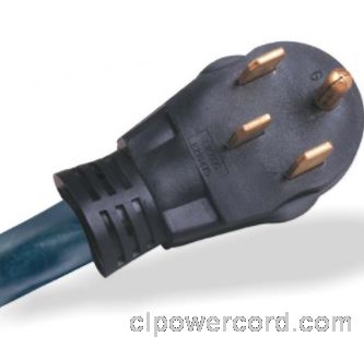 插頭標準 NEMA 14-50P 三芯接地彎頭50安,250伏重型插頭, AC 交流Heady Duty ,尾部帶金屬卡扣保護電線,圓形接線端子。