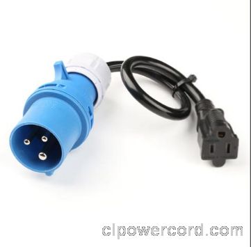 > 美國延長線轉換延長線,16安,250伏,易裝配IEC 60309工業插頭,NEMA5-15R美式標準插座 ,定制電源線長度,美國UL,加拿大cUL認證