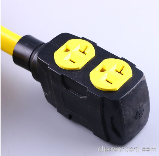 美國延長線轉換延長線,L14-30P自鎖插頭,Y形一轉二,3孔20安NEMA 5-20R插座X2,過載保護,定制電源線長度,美國UL,加拿大cUL認證