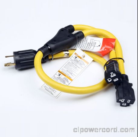 美國(guó)延長(zhǎng)線(xiàn)轉(zhuǎn)換延長(zhǎng)線(xiàn),L14-30P自鎖插頭,Y形一轉(zhuǎn)二,兩孔20安NEMA 5-20R插座,定制電源線(xiàn)長(zhǎng)度,美國(guó)UL,加拿大cUL認(rèn)證