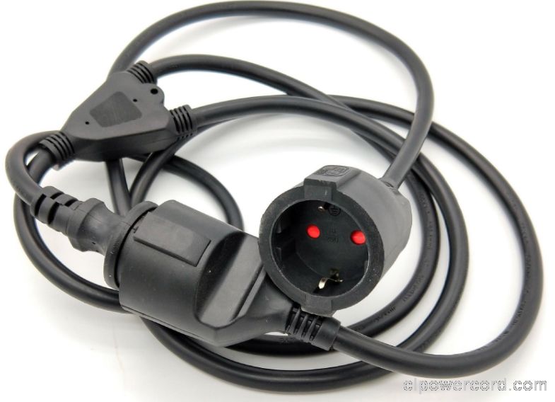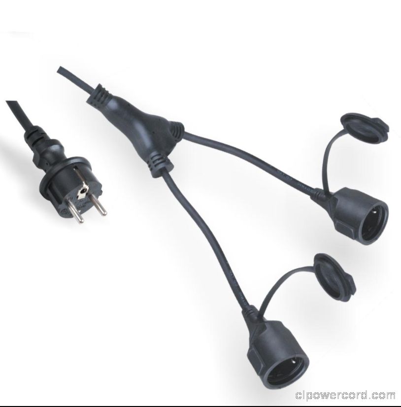插頭標準歐洲通用德國 SCHUKO CEE7/7 (歐插電源線) 16A 25V 直角 IP44防水等級戶外 F型插頭,中間形 一轉二分支器,插座標準歐洲通用德國CEE7/7接地16安培,單孔德式*2,帶保護門,防水蓋,防水等級 IP44 插座.歐洲延長線(德國延長線)歐盟德國德式戶外IP44直角防水插頭 Y 型分支器 一出二 一出四 CE GS認證德國德式帶防水蓋插座延長線